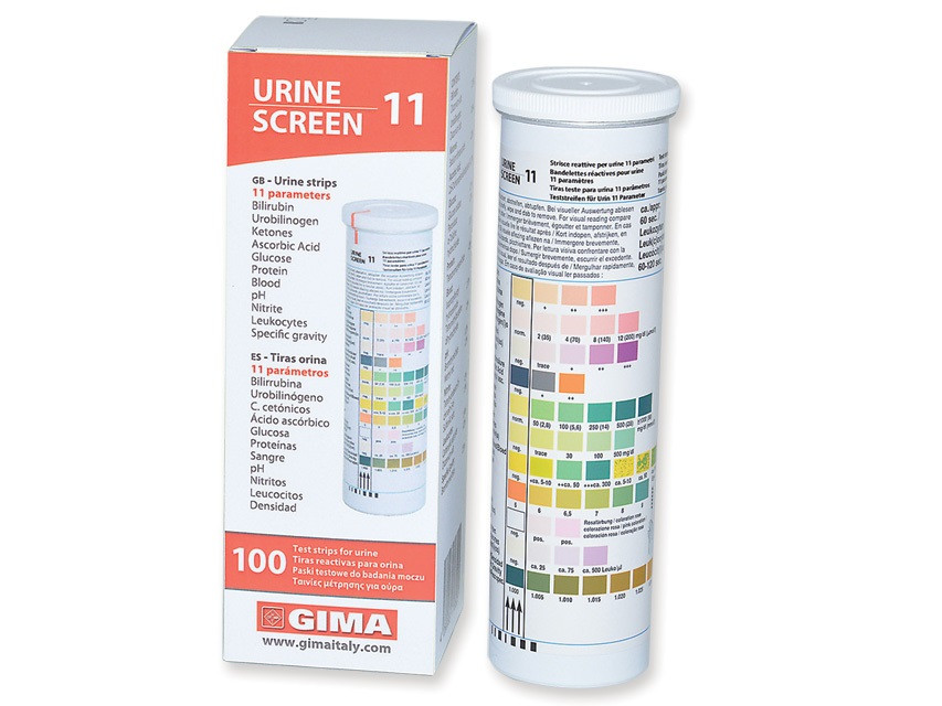 Тест-смужки URINE SCREEN для аналізу сечі, 11 параметрів, 100 шт., Італія