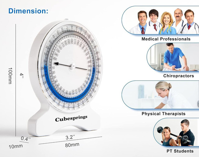 - Висока точність і відтворюваність: Наш інклінометр забезпечує максимально точні та послідовні вимірювання кутів, що критично важливо для професійної оцінки та моніторингу стану пацієнта. Отримуйте надійні дані для діагностики та відстеження динаміки відновлення.